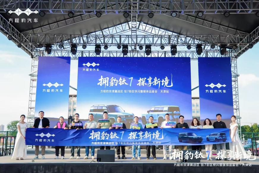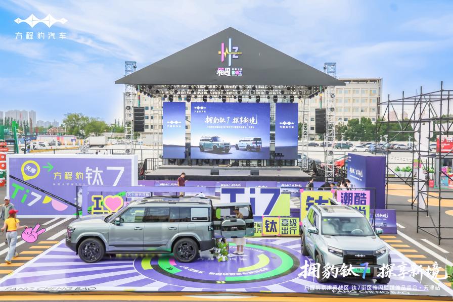 9月26日至27日,方程豹汽车“拥豹钛7 探享新境——钛7街区快闪暨媒体品鉴会·天津站”活动在天津创意之城·箱遇BOX盛大举行。作为方程豹钛7在天津的战略首秀,本次快闪以“硬派科技+城市潮玩”的双重魅力,吸引媒体及车迷共赴一场潮酷时尚的沉浸式体验之旅。