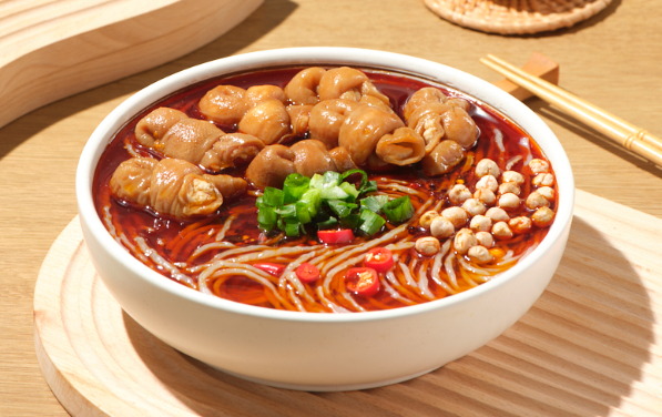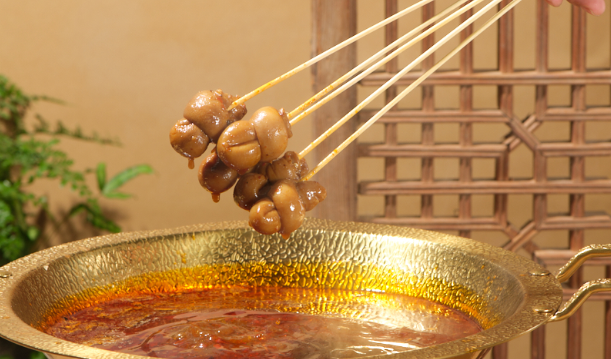 冒节子,其实是四川人对“卤制打结猪小肠”的爱称。新鲜猪肠经过反复清洗去异味,再打上独特的“节子结”——这个结可不是随便打,既要锁住卤汁,又要保证下锅后能吸饱火锅红油。涮煮后的冒节子像个圆滚滚的小气球,咬开瞬间卤香与麻辣在嘴里爆开,脆嫩中带着Q弹,油脂香混着汤底的醇厚,一口就让人“上头”。