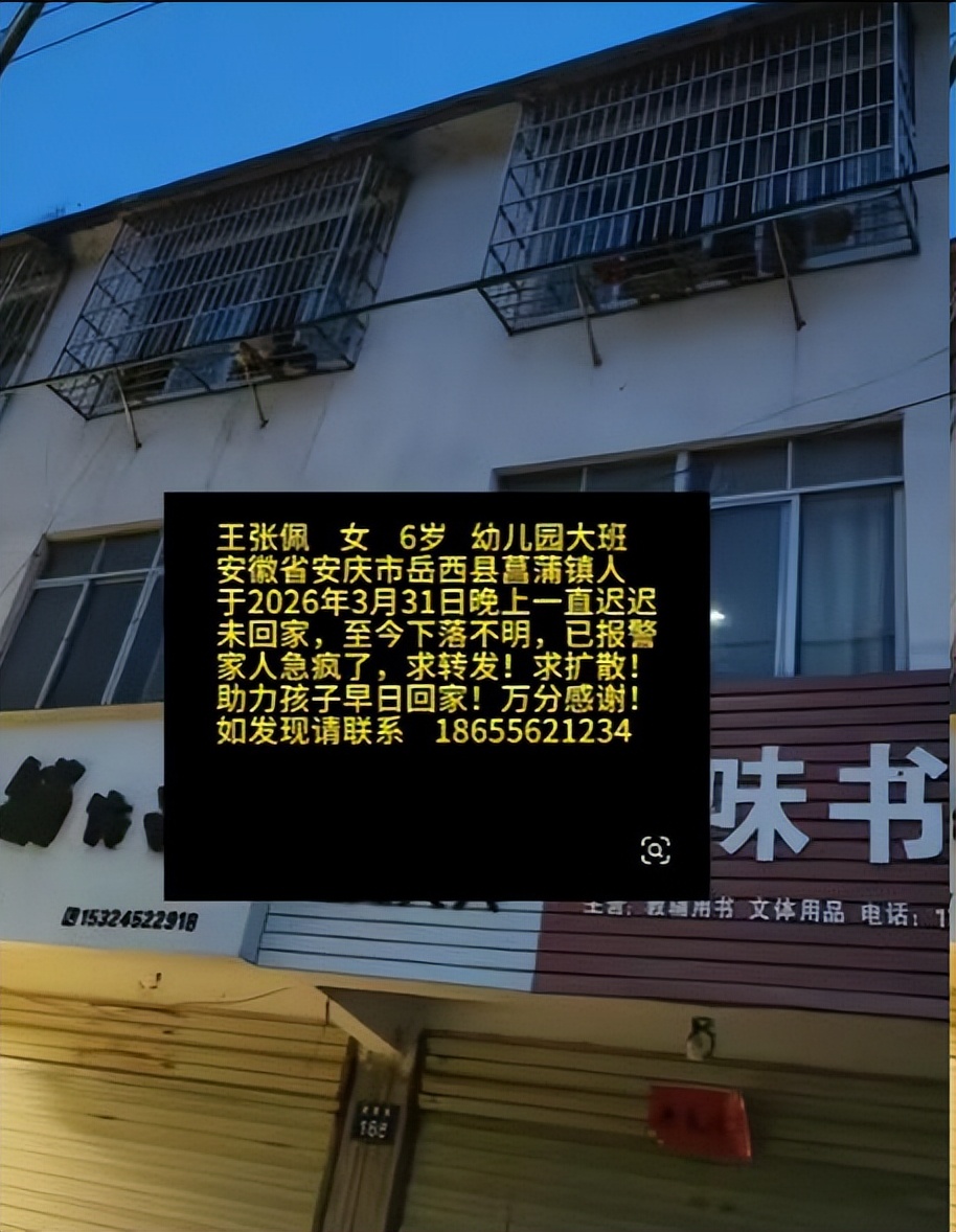 安徽失联女童迎来新线索2026年3月31日晚8点左右,天已经完全黑透,安徽安庆岳西县菖蒲镇的街头,商铺还亮着灯,零星有行人路过。