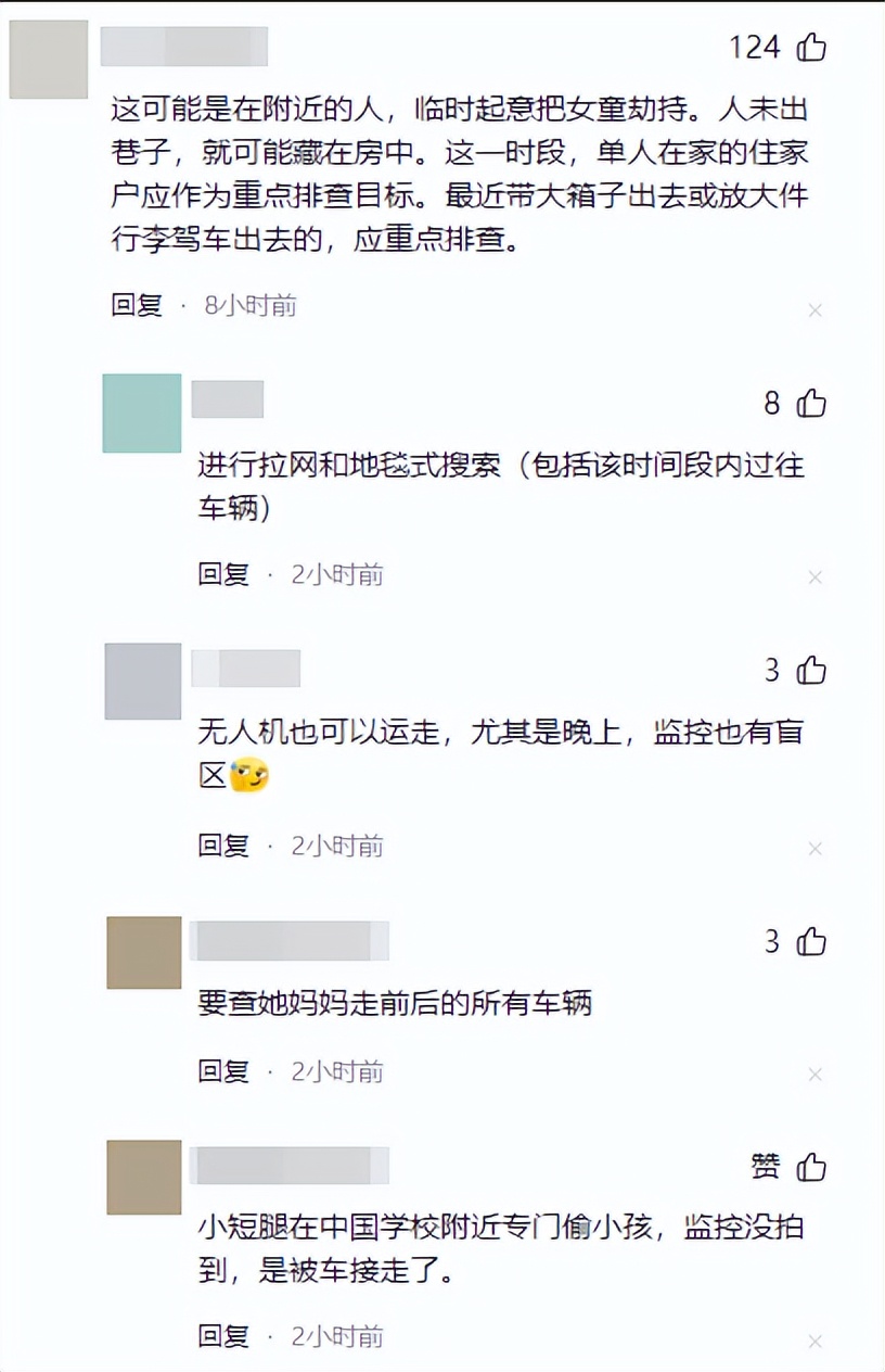 当这个消息曝光之后,不少网友猜测,这可能是在附近的人,临时起意把女童劫持,人未出巷子,就可能藏在房中。