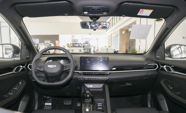 再看看内饰部分。吉利缤越L采用环抱式座舱,这种座舱设计让驾驶者有一种被包裹的感觉,增加了驾驶的安全感。车内以黑色内饰搭配黄色缝线,这种搭配让内饰看起来更加精致。车内提供平底造型方向盘,握在手里手感很不错。8.8英寸彩色仪表和14.6英寸悬浮式中控屏幕是内饰的科技亮点。8.8英寸的彩色仪表可以清晰地显示车辆的各种信息,如车速、转速、油耗等;14.6英寸的悬浮式中控屏幕则集成了车辆的多媒体、导航等功能。隐藏式空调出风口和电子挡杆的设计也让车内看起来更加简洁、时尚。而且,它还搭载全新Flyme Auto车机系统、亿咖通E02座舱芯片,支持桌面自定义等功能。这意味着驾驶者可以根据自己的喜好来设置车机系统的界面,让操作更加便捷。
