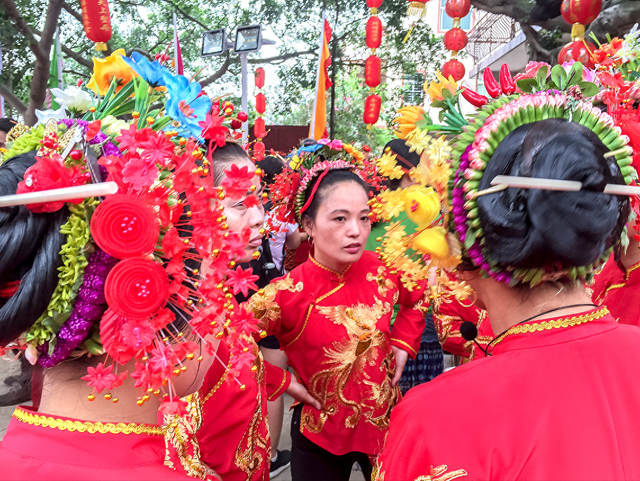 非遗体验亮点在泉州西街,我戴上非遗“簪花围”,跟着省级传承人陈连法学唱一曲南音。咿呀婉转的千年古调中,仿佛穿越回宋元。蟳埔女的簪花头饰制作体验,让银发如花绽放,拍照时连孙女都惊呼“奶奶变仙女了!”
