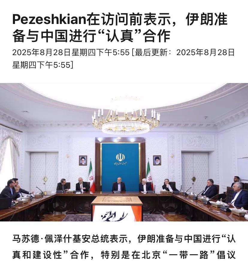 另一方面,伊朗总统的北京之行,恰好与欧洲三强(英、法、德)对伊朗的强硬施压形成 “时间交集”。8 月 28 日,英法德三国正式宣布启动联合国安理会对伊朗制裁的回应机制,并计划在未来 30 天内重新恢复 10 年前对伊朗的制裁,此举的核心目的是施压伊朗在核问题上配合西方诉求。在此背景下,佩泽什基安坚持赴华出席阅兵式与上合峰会,显然释放出伊朗将继续与西方强硬立场对抗的信号。这一动态不仅可能影响伊朗与西方的关系走向,还可能对伊朗与以色列的紧张关系产生连锁反应 —— 西方舆论尤为担忧,这种对抗态势是否会升级为类似 6 月份以色列与美国联合袭击伊朗的战争风险?而包括中俄朝在内的、出席北京阅兵式的国家,是否会在后续为伊朗提供支持以应对潜在危机?这些疑问,共同构成了西方世界对此次伊朗总统访华高度关注的核心议题。