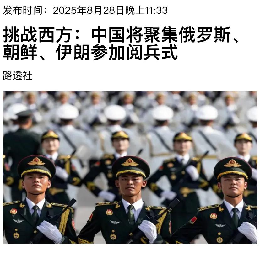 8 月 28 日,我国官方宣布 26 国领导人将赴北京出席阅兵式的消息后,这一重要外交动态迅速引发美欧日韩等西方主流媒体的高度聚焦。通过对相关报道的梳理不难发现,几乎所有西方媒体在提及此事时,都不约而同地将目光投向了朝鲜最高领导人金正恩 —— 这一细节清晰表明,在此次出席活动的多国领导人中,金正恩的动向是外界关注度最高的焦点。