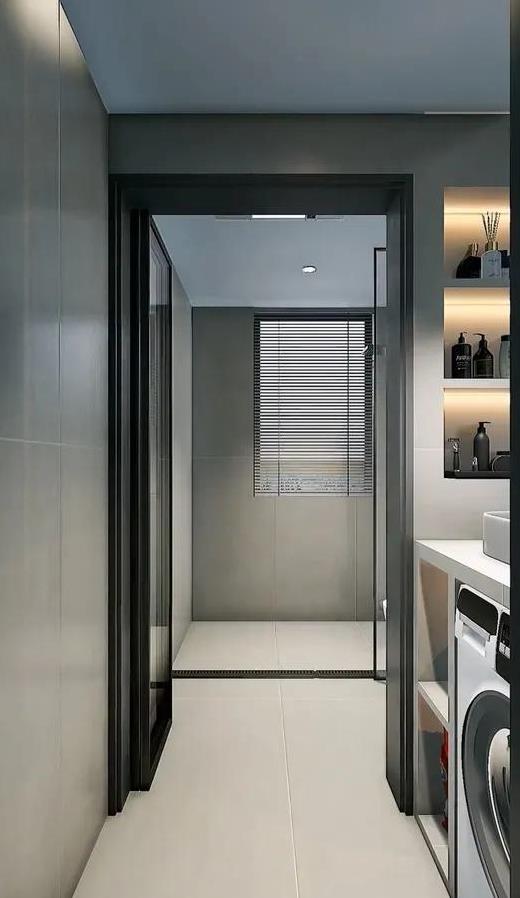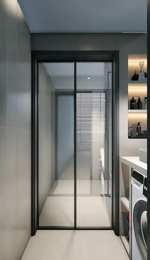 最后于中间包门套并安装折叠门,开合之间,让卫生间空间更显开阔,整体设计彰显独特匠心与对空间利用的极致追求。