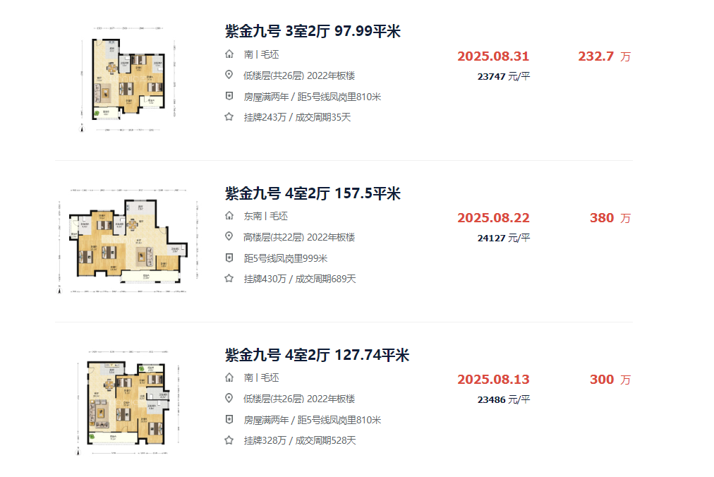二手分析带着这种价格逻辑再看看如今的二手情况,以今年的成交案例来看: