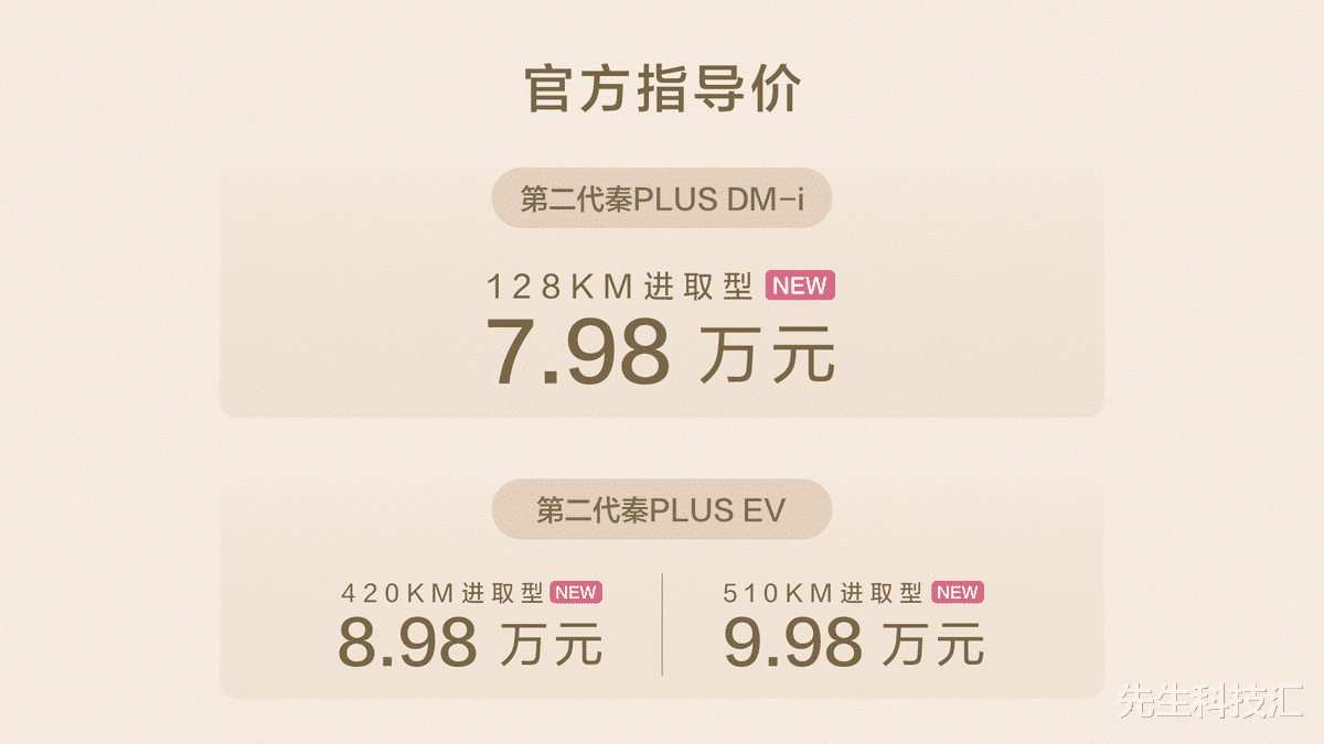 9月25日,比亚迪第二代秦PLUS双车上新,发布了秦PLUS DM-i 128KM进取型、秦PLUS EV 420进取型、510KM进取型三款新车。