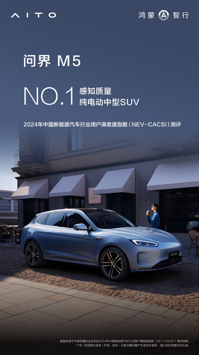 近期,2024年中国新能源汽车行业用户满意度指数(NEV-CACSI)测评结果公布,问界M5获得纯电动中型SUV感知质量第一名,再次印证了行业及用户对其的高度认可。年底计划买车换车的朋友不妨抓住这个机会,尽快前往附近鸿蒙智行门店试驾体验、下定,实现过年开新车的想法。