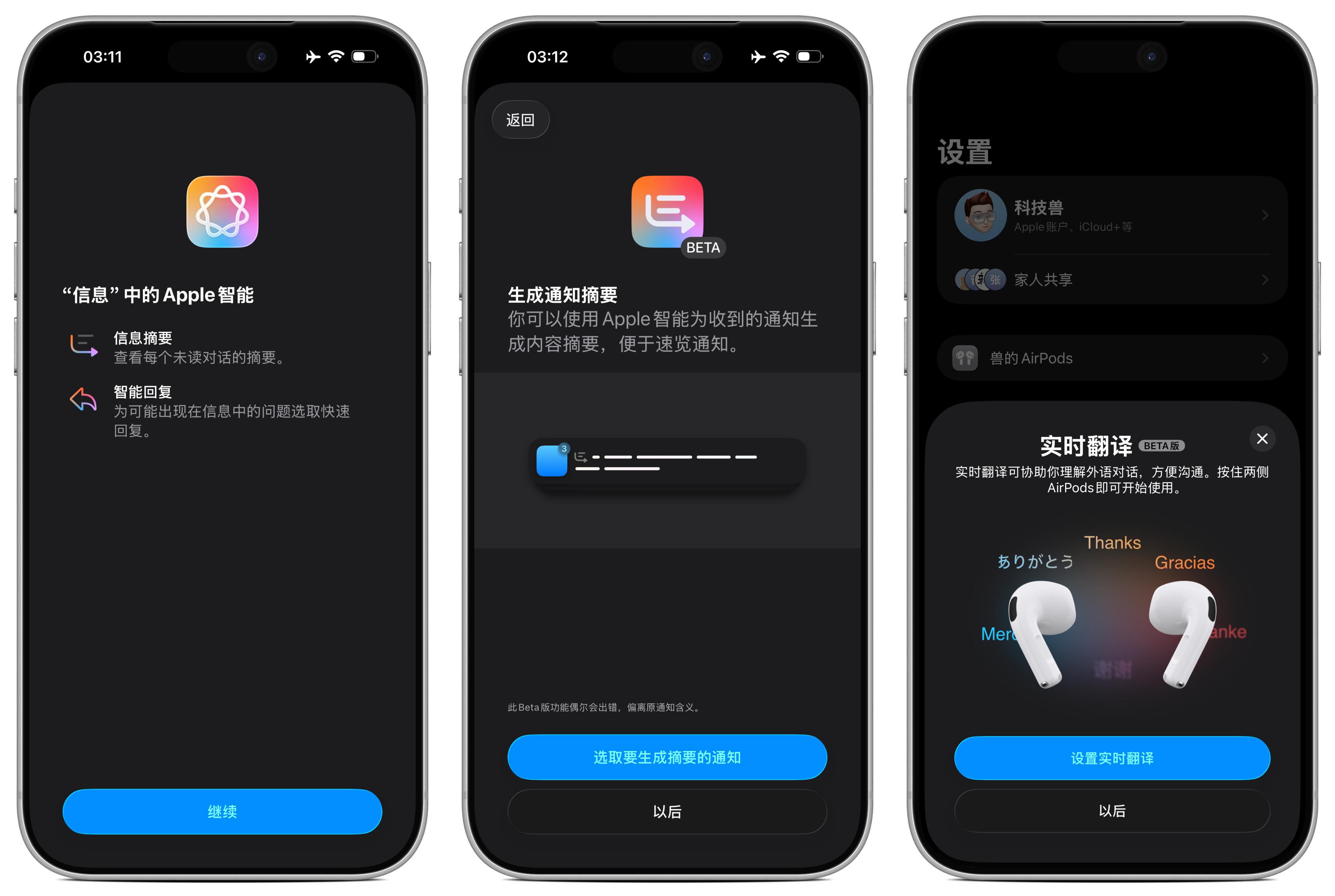 信息摘要 / 通知摘要 / AirPods 实时翻译