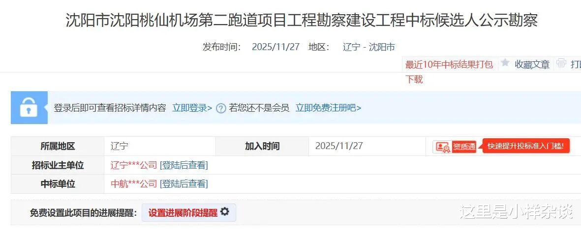 终于告别前期工作了。可研批复了,接下来就该是各种土建施工的招标了。11月27日沈阳市桃仙机场第二跑道项目工程勘察建设工程中标候选人公示了。