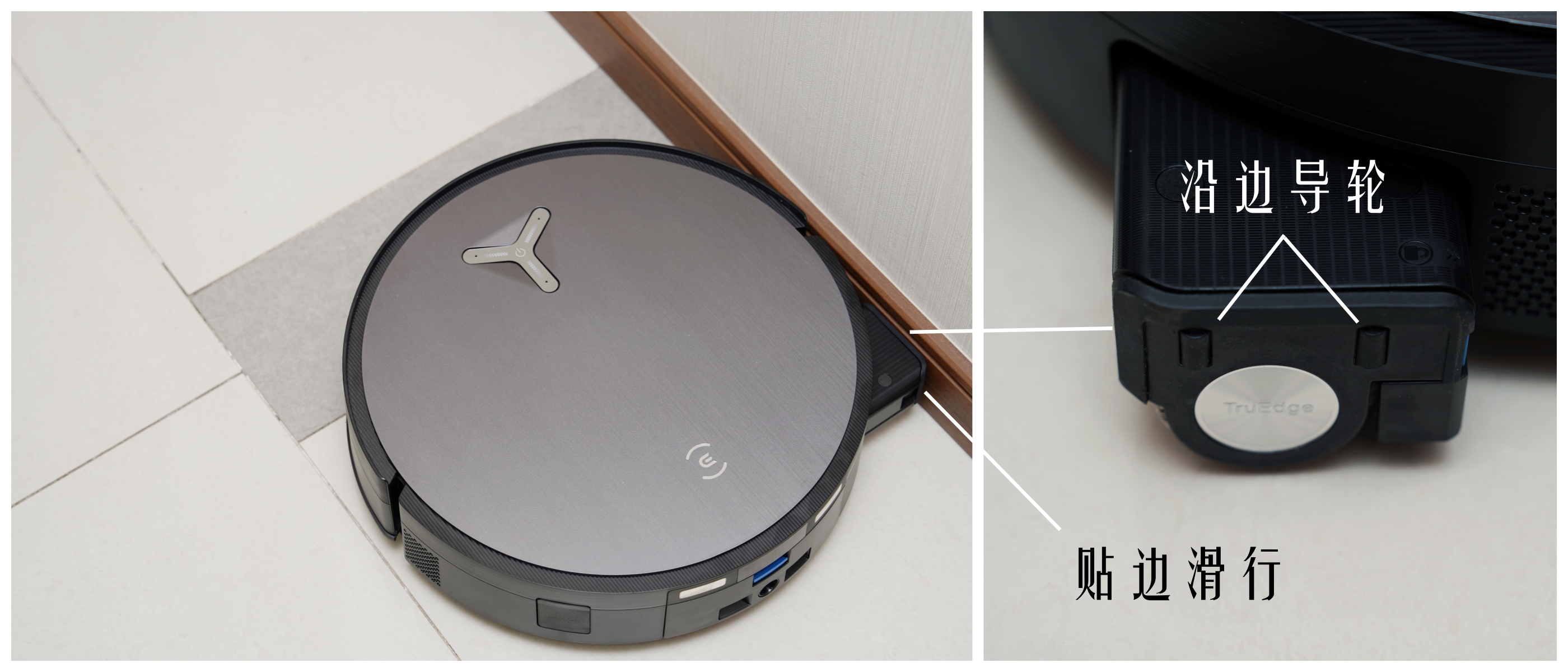 在拖地时,滚刷更可以实现AI全域贴边,沿边导轮的设置更能防护踢脚线和保障最大清洁覆盖范围,滚刷最长可弹出15mm,更能深入凹柜,清洁更加彻底。