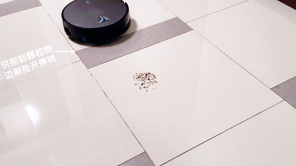 在执行边扫边拖任务时,超声波传感器感应到地毯之后,会自动抬升拖地组件,同时还会自动增压加强地毯吸力与风量,让地毯清洁更加透彻,拔出隐藏在短绒毛间的细小灰尘杂物。
