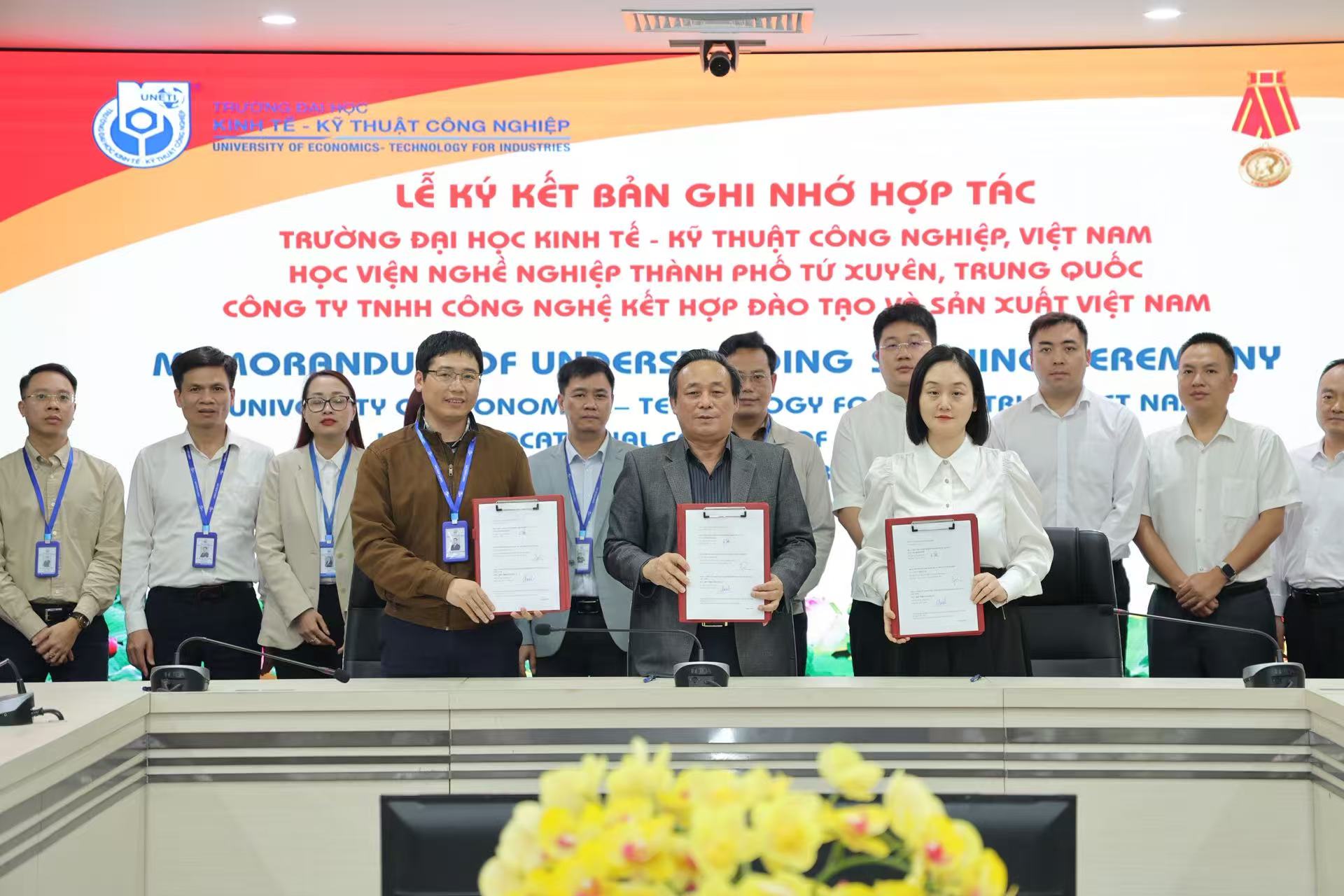 其中,四川城市职业学院将作为核心教学资源输出方,负责课程体系开发与师资培训;越南经济-工业技术大学将承担本土化教学实施与标准推广应用的重任;而越南产教融合科技有限公司负责整合产业资源、保障学生就业并提供先进的数字化技术解决方案。