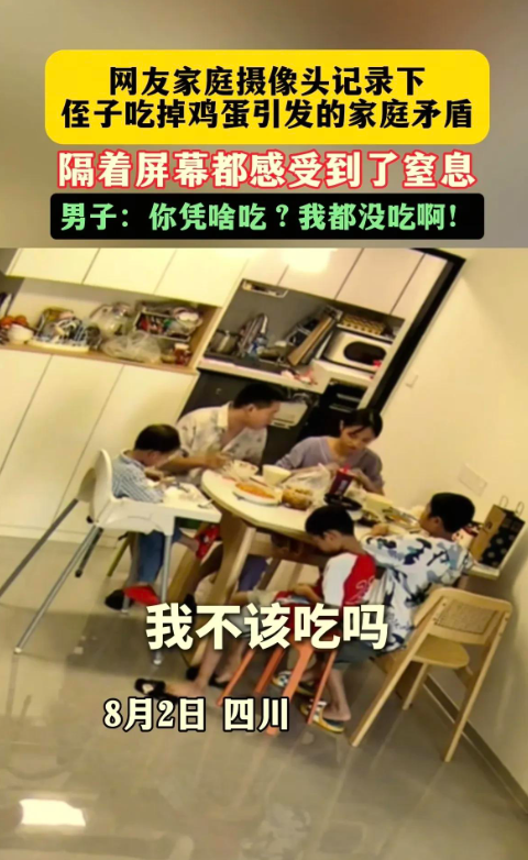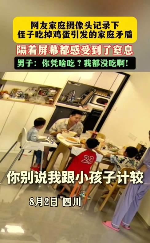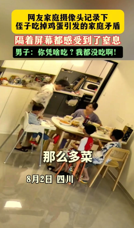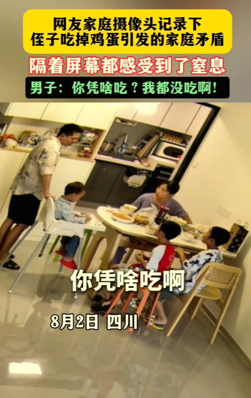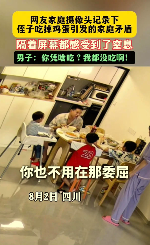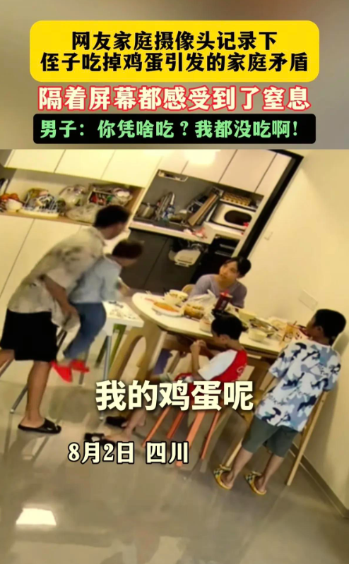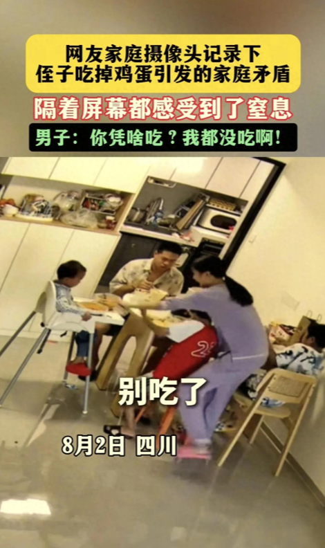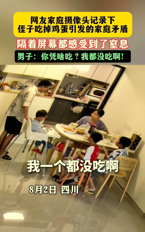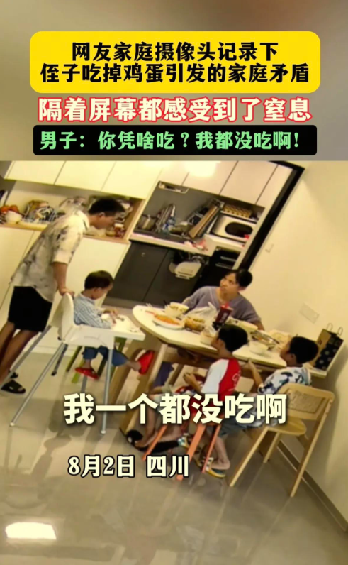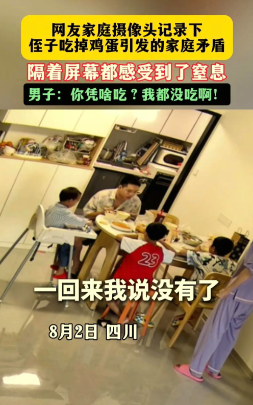 当时女主人煮了几个鸡蛋,两个侄子各吃了一个。丈夫见状非常不悦,于是有了接下来令人瞠目的一幕。
