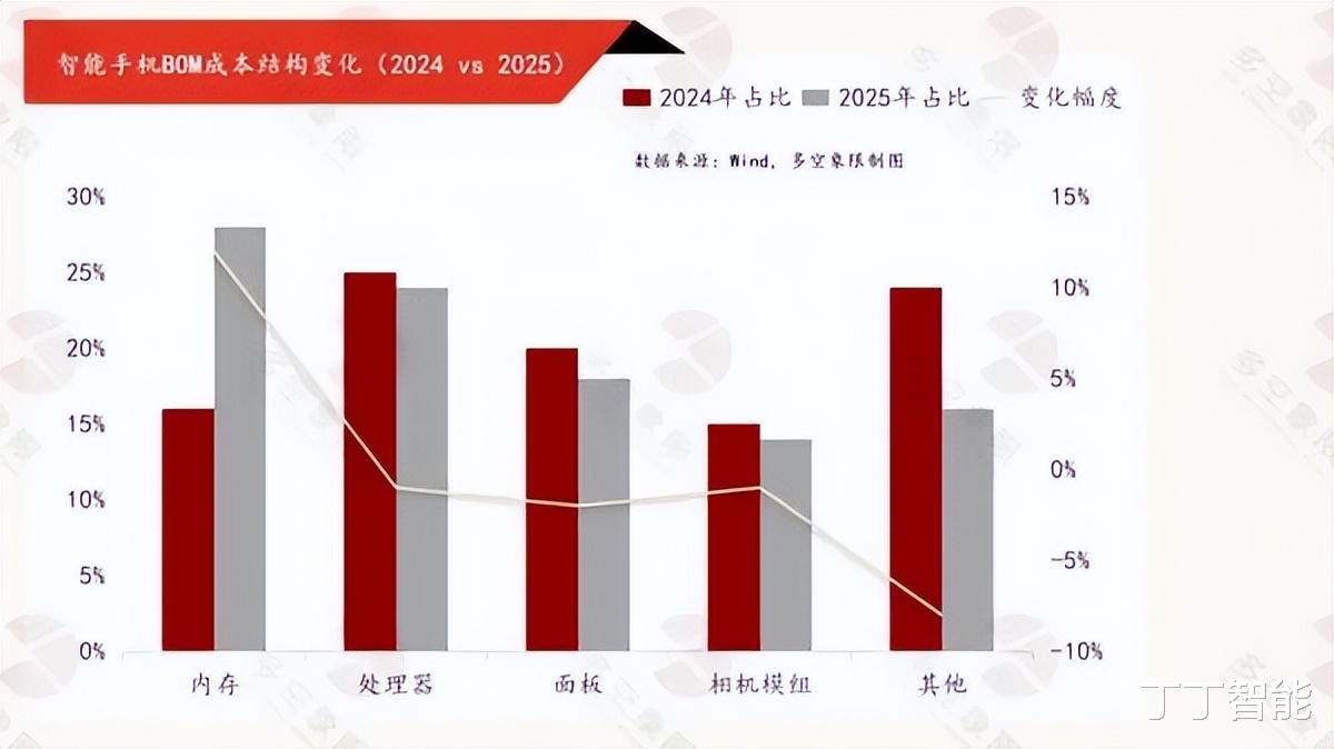 IDC的数据显示,内存在智能手机总成本中的占比已经从过去的10%-15%飙升到20%以上,部分中低端机型甚至逼近30%。这是什么概念?以前内存是“配角”,现在快成“主角”了。