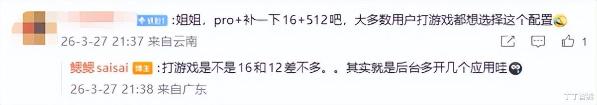 产品经理说得也没毛病:“打游戏是不是16和12差不多,其实就是后台多开几个应用哇。”对于大多数用户来说,12GB已经足够了。平时刷刷短视频、聊聊微信、玩玩游戏,后台挂个三五个应用完全没问题。16GB确实更强,但对于非重度用户来说,提升感知有限。