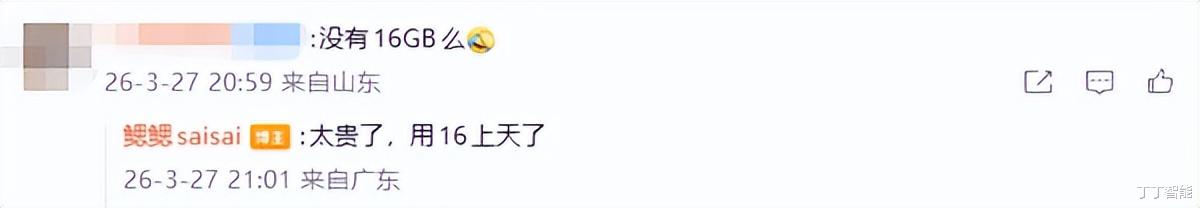 这就有点奇怪了。现在都2026年了,怎么反而开倒车?有网友在OPPO产品经理鳃鳃的微博底下留言问“没有16GB么”,得到的回复是:“太贵了,用16上天了”。