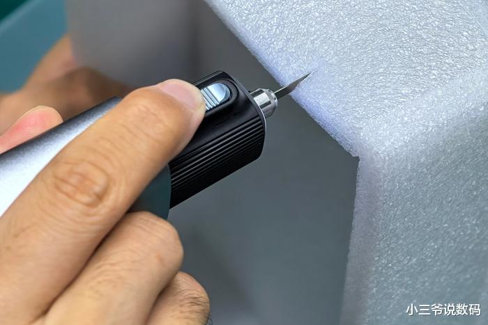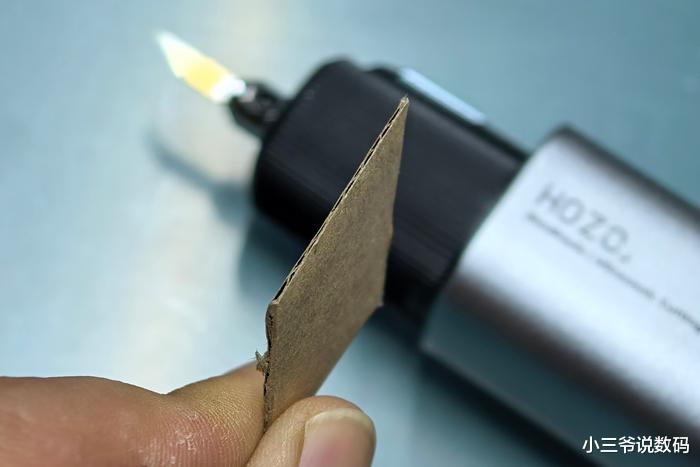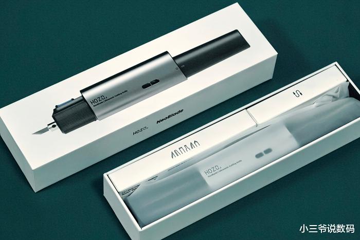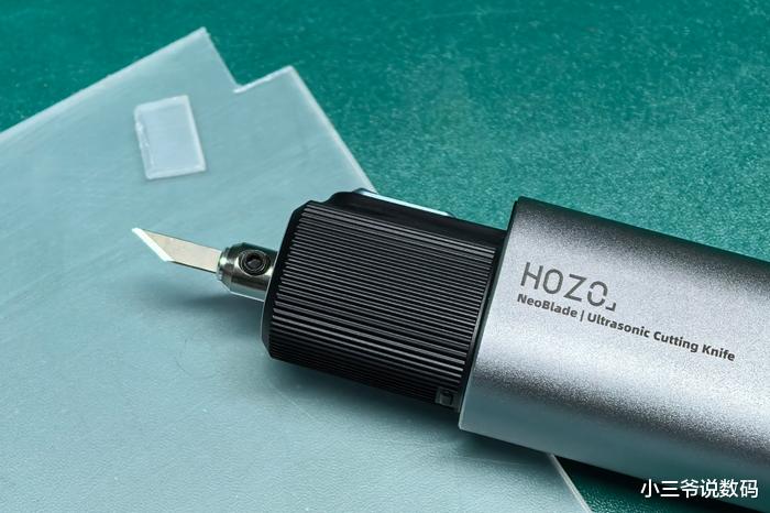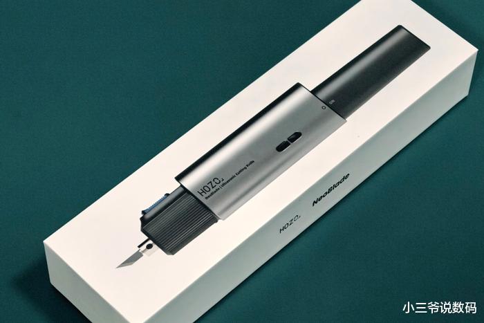 HOZO无线超声波切割刀给我的第一印象是像一支精致的大号记号笔,金属材质的机身拿在手里很有质感。