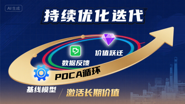 三、持续优化迭代 —— 激活数字孪生交付的 “长期价值”数字孪生不是 “一建了之” 的项目,而是 “持续生长” 的生态。随着业务需求的变化、技术的升级、数据的积累,数字孪生若停止迭代,终将与物理场景脱节,丧失价值。持续优化迭代作为 “第三斧”,核心是建立 “数据驱动 - 业务适配 - 价值升级” 的闭环机制,让数字孪生从 “交付品” 变为 “持续创造价值的资产”。