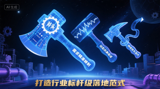 破解这一困局,需要一套系统化的交付方法论作为支撑。“需求精准映射、动态仿真验证、持续优化迭代” 构成的 “数字孪生交付三板斧”,正是从项目全生命周期出发,构建从需求到价值的闭环,推动数字孪生从 “技术展示” 转向 “价值创造”,最终打造可复制、可推广的行业标杆级落地范式。