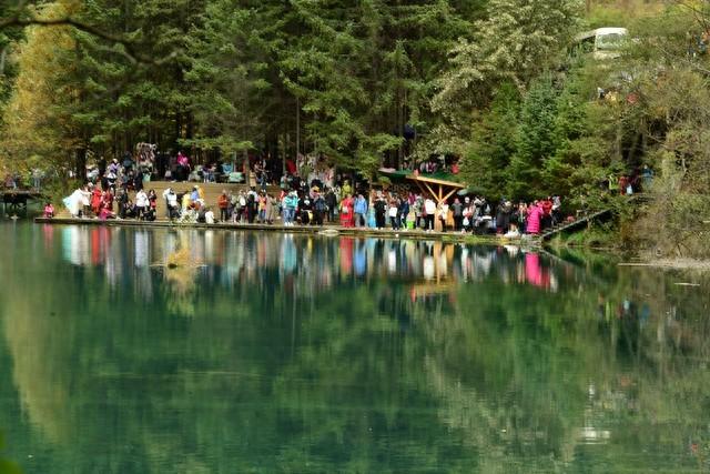 真实体验二:季节的魔法表演九寨沟的四季分明程度,让习惯福州"四季常青"的我倍感新奇。十月中旬的树正沟,冷杉林还保持着苍翠,枫树已染成明黄,槭树则红得像是要滴血,三种颜色在镜海的水面交融,形成天然的印象派油画。当地藏民说,这种色彩盛宴每年仅维持15天左右,叶片从变色到凋零不超过三十天。