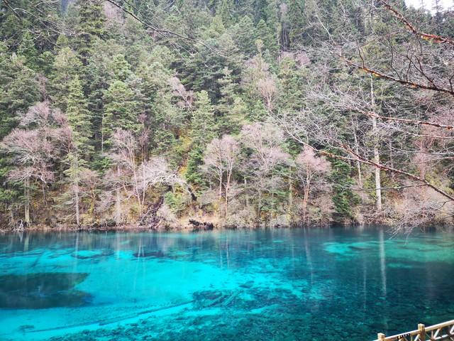 最震撼的是五花海的"水下森林"。站在木质栈道上,能同时看到水面漂浮的秋叶、水中悬浮的矿物质、水底沉寂的古树,这种三维透视效果,像极了把整个生态系统装进水晶陈列柜。保护区工作人员告诉我,这种特殊水质需要上万年钙化沉积才能形成,目前全球仅存不到十处。