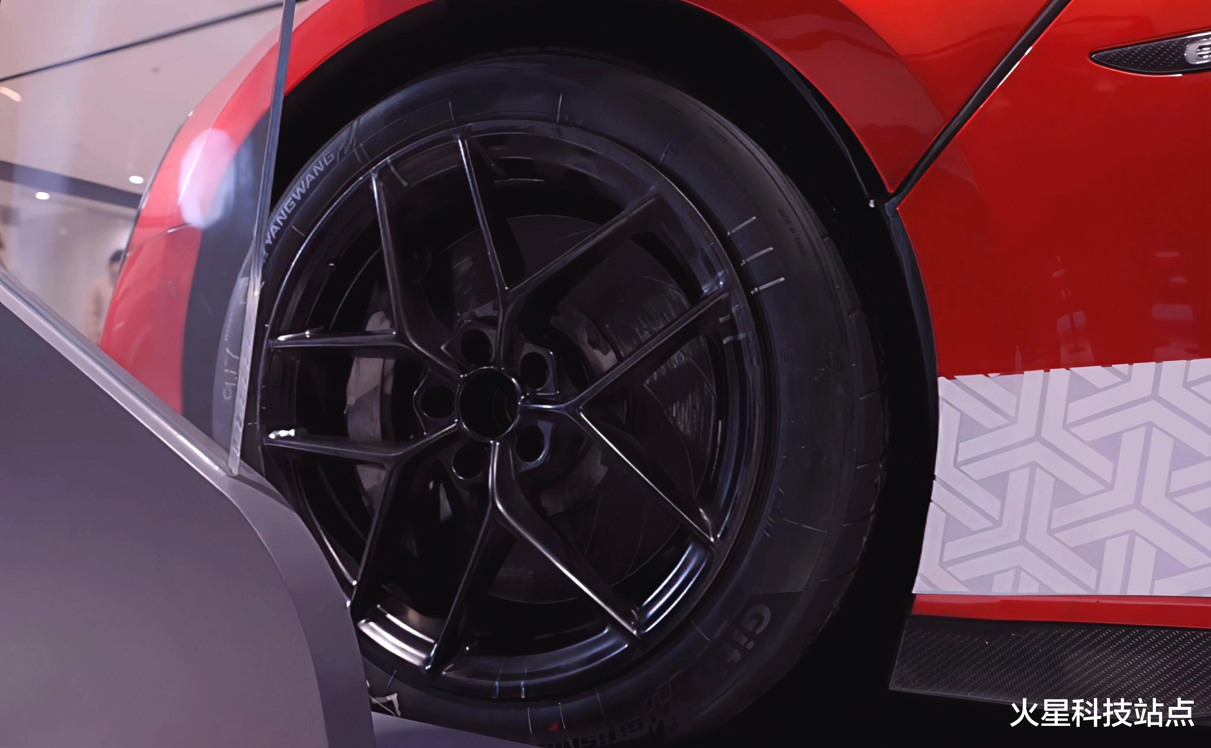 轮胎是仰望和佳通联合特别定制的,其采用GitiSport e·GTR² ᴾᴿᴼ半热熔轮胎集成芳纶纤维抗离心膨胀技术,非对称花纹设计兼顾500km/h极速稳定性与湿地排水性能,胎侧结构强化则支撑超高G值过弯需求,为了更好的抓地力,胎宽也达到了325。其次,超高的速度也将面临更加更难的制动,所以仰望U9 Xtreme也采用了钛合金碳陶制动系统,在纽北177个弯道的连续测试中实现了制动效能零衰减。