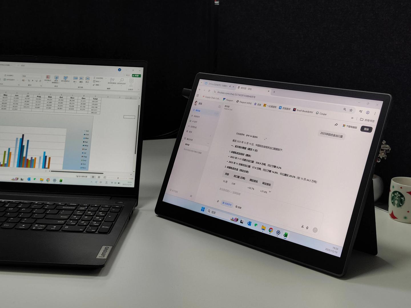 身为一个经常需要户外办公、短途出差的打工人,最头疼的就是笔记本一到户外就 “瞎眼”:阳光直射下屏幕反光严重,字都看不清,只能蹲在阴凉地儿将就;回到室内单屏办公也闹心,AI 辅助查数据、Excel 拉表、改 PPT 来回切窗口,思路全被打断。早就想找一款 “户外能打、室内好用” 的便携屏,刷到海乐思 S135 瞬间心动:299 元首发价,直接给到松下 2.2K 原装屏 + 500 尼特高亮 + 折叠支架,完美戳中我的核心需求,果断下手!