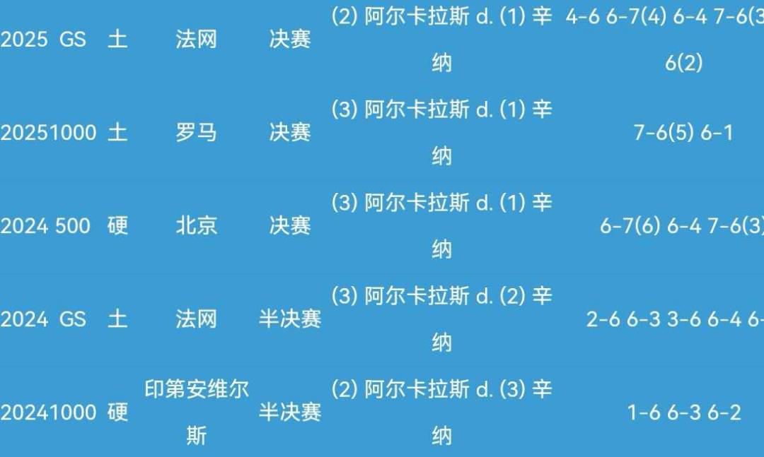从去年到今年温网之前,阿尔卡拉斯连续五次战胜辛纳,将与辛纳的交锋纪录改写为八胜四负。但是这一波五连胜并不像看起来的差距那么大,更谈不上恐怖,因为阿尔卡拉斯几乎每一场胜利都是费尽千辛万苦,真的来之不易,甚至四场比赛都是命悬一线,最后逆转成功的。唯有今年罗马大师赛决赛,阿尔卡拉斯两盘战胜辛纳,夺取冠军。但是那场比赛的第一盘,仍然是辛纳率先拿到盘点的,阿尔卡拉斯惊险挽救盘点后才抢七获胜。