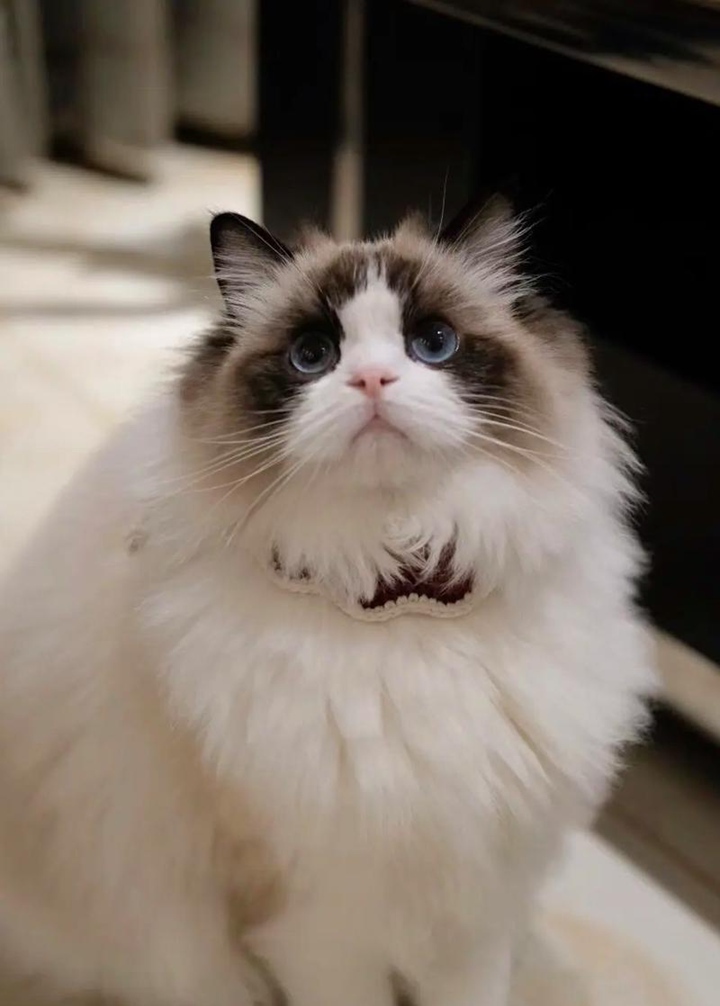 再来说说布偶猫吧。布偶猫那可是猫界的“大美女”或者“大帅哥”呢。它的身体比长毛暹罗猫要圆润一些,就像个毛茸茸的团子。它的脸也是圆圆的,肉嘟嘟的,特别可爱,就像个刚出笼的小馒头。它的眼睛也是大大的,而且是那种很温柔的蓝色,就像天空一样纯净。
