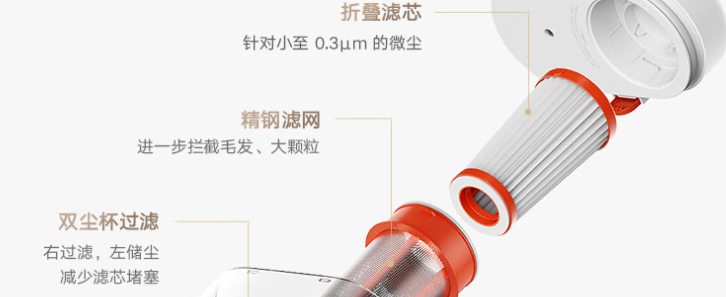 平时清洁维护也简单,它有两个分开的尘杯,加起来500ml 容量,还是透明的,里面吸了多少螨虫灰尘一眼就能看到,按一下就能倒干净,不脏手。过滤用的七重 HEPA 滤网能水洗,用完冲一冲晾干就能再用;尘杯、滤网、滚刷都能轻松拆下来,洗得干干净净,不会有脏东西残留造成二次污染,整机过滤效果能达到99.99%,家里有容易过敏的人、小宝宝或者养宠物的,用着都放心。
