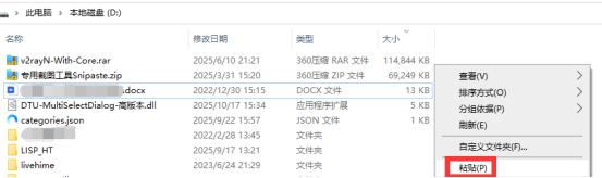 3、打开你想要安装存放的位置(例如D盘),打开D盘,鼠标右键,选择【粘贴】。