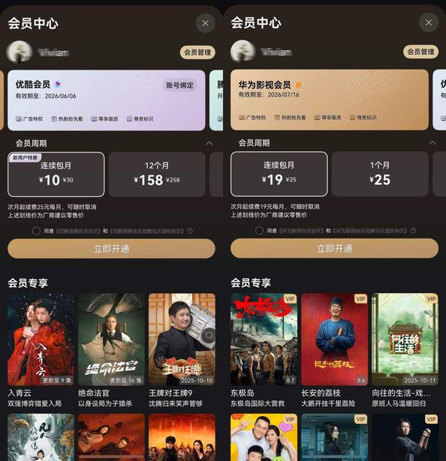 影视VIP年卡包含“华为影视会员+优酷会员”的年卡礼包。我给大家科普一下,它包括了华为视频、芒果TV和优酷三大平台的内容,而且还是一整年的会员,这真是实打实地省了小几百!