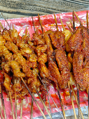 一家烧烤店,烧烤烤的非常香,他们家的烧烤菜品推荐五花肉,现切现烤,肥而不腻,料也香!