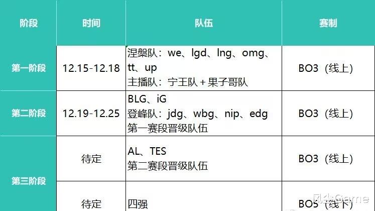 LPL德玛西亚杯,再有一周就正式开赛了,LOL博主近日发文爆料德杯赛制,全程一共分为三个阶段,参赛队伍们,按照今年的成绩分档,第一阶段,LPL涅槃组的队伍,和主播队先打,参赛的主播队,只有城墙哥和果子哥,具体的晋级数量,现在还不知道,盲猜的话,应该是8队进2队。