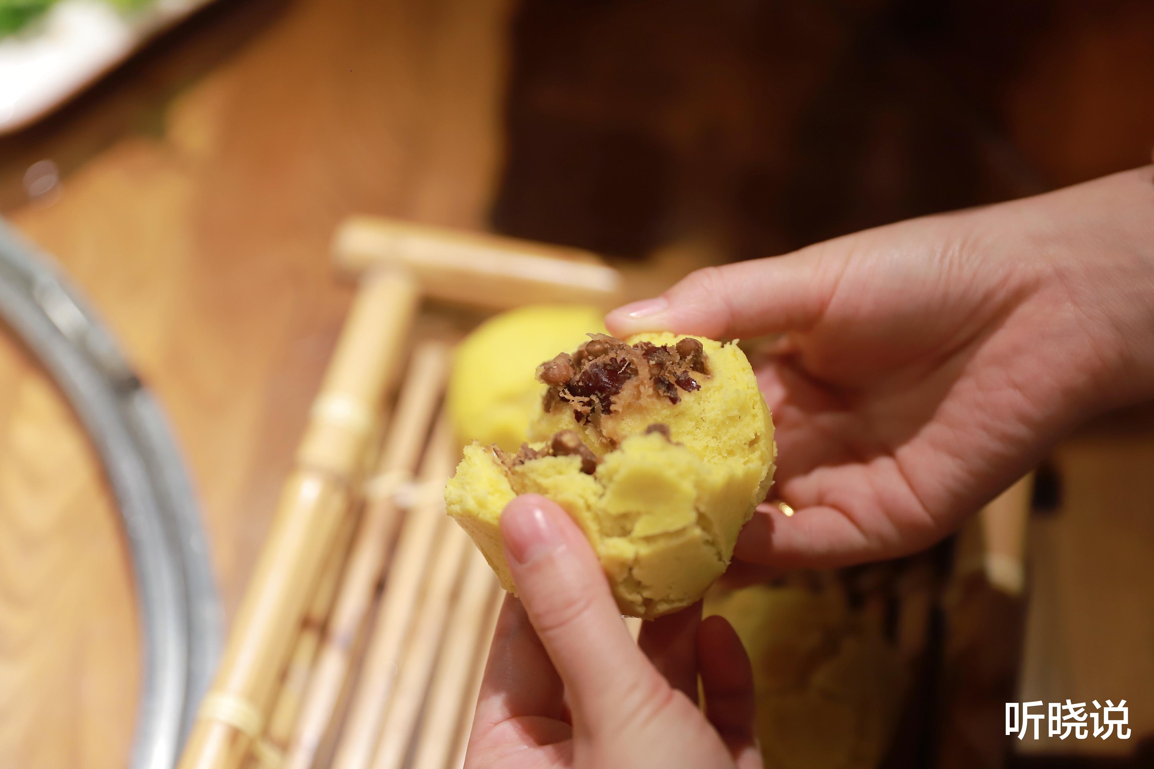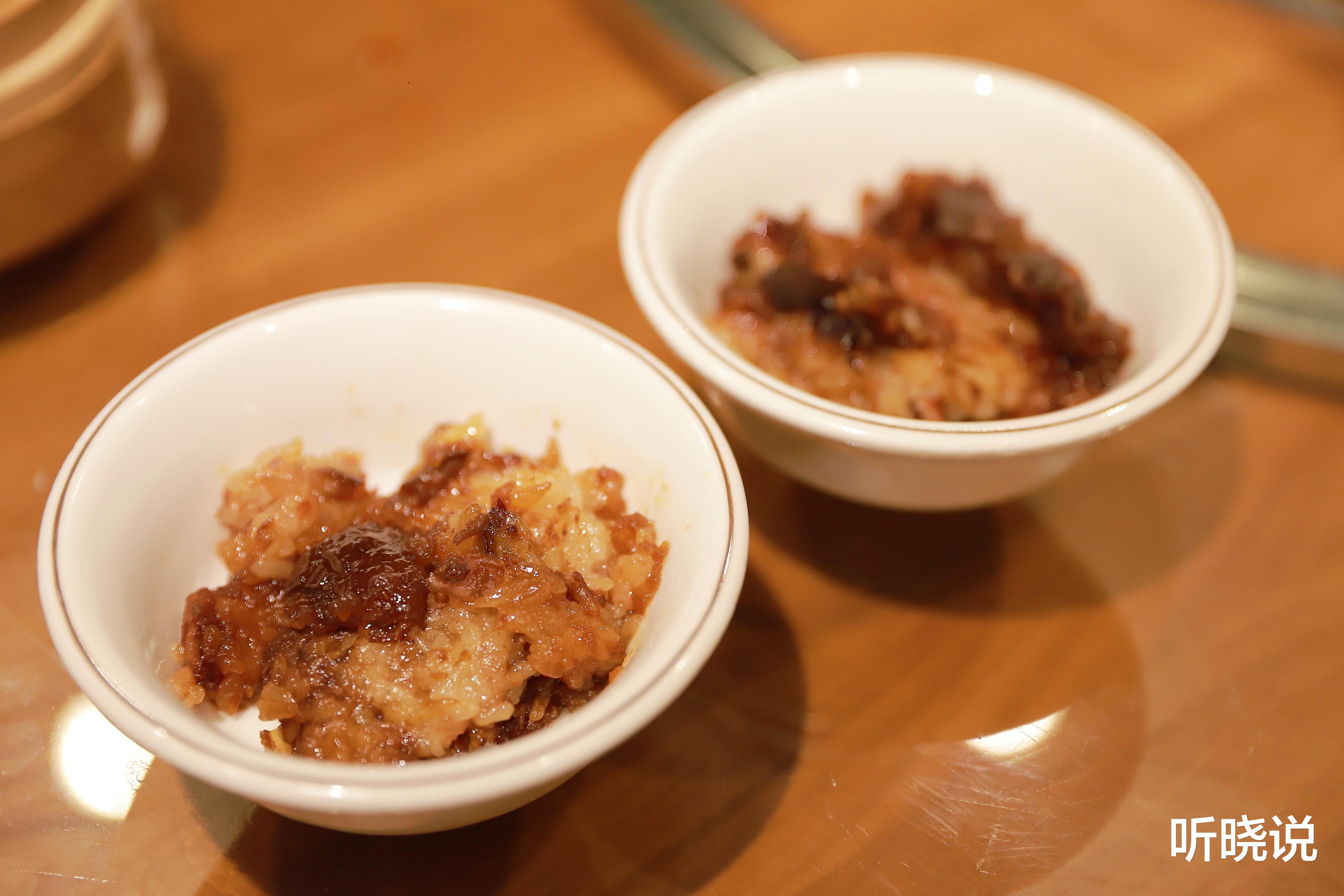 还有造型精致的天王油塔,看起来很小巧,吃的时候要抖三抖,分量还挺大,而且蘸酱之后味道出乎意料的好吃。