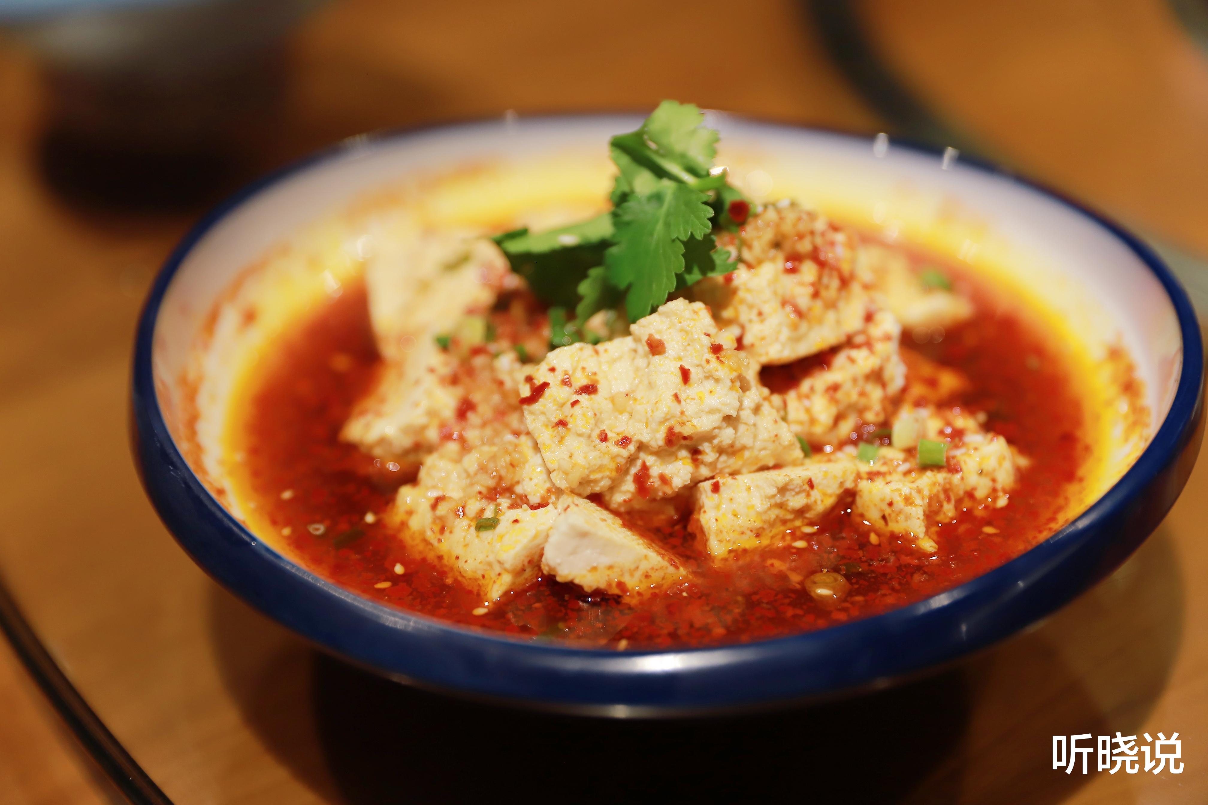 油泼老豆腐味道也很出众,经典的陕西油泼辣子,洒在很有韧劲的老豆腐上,每一口都鲜美诱人。