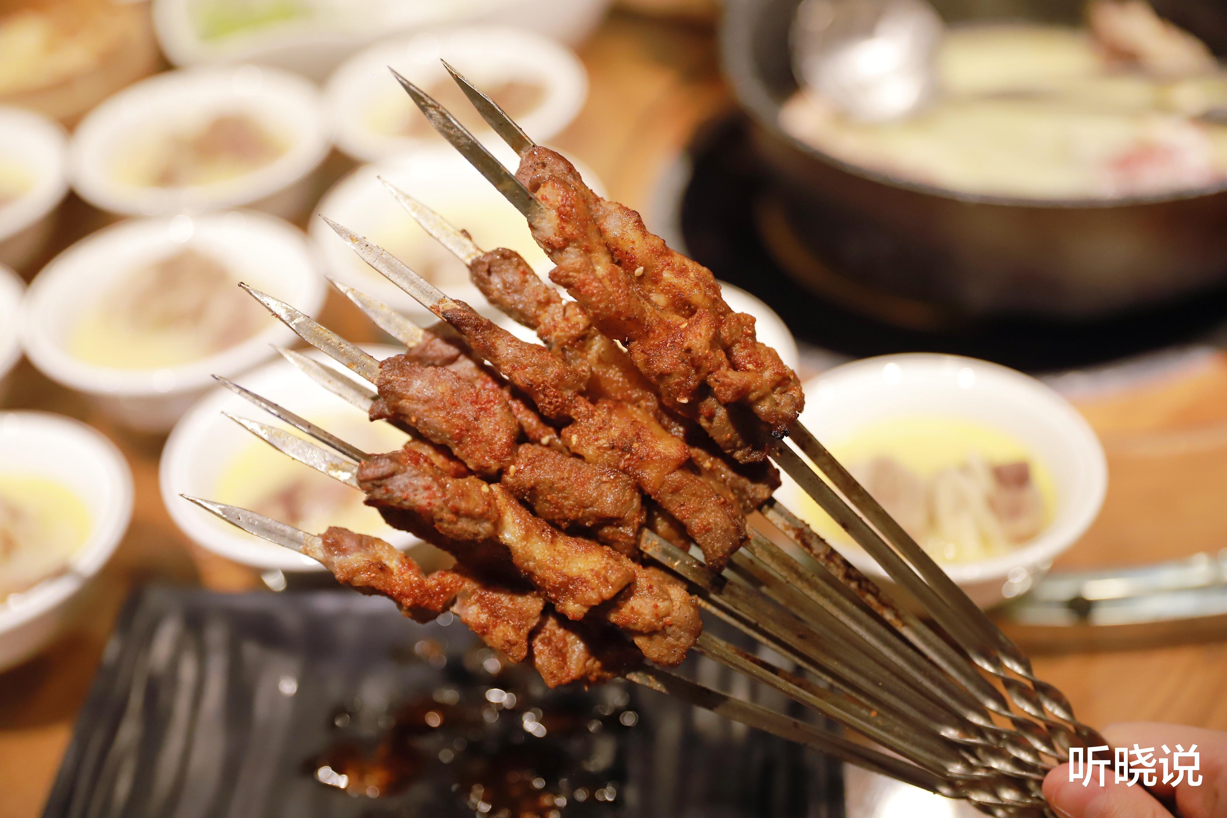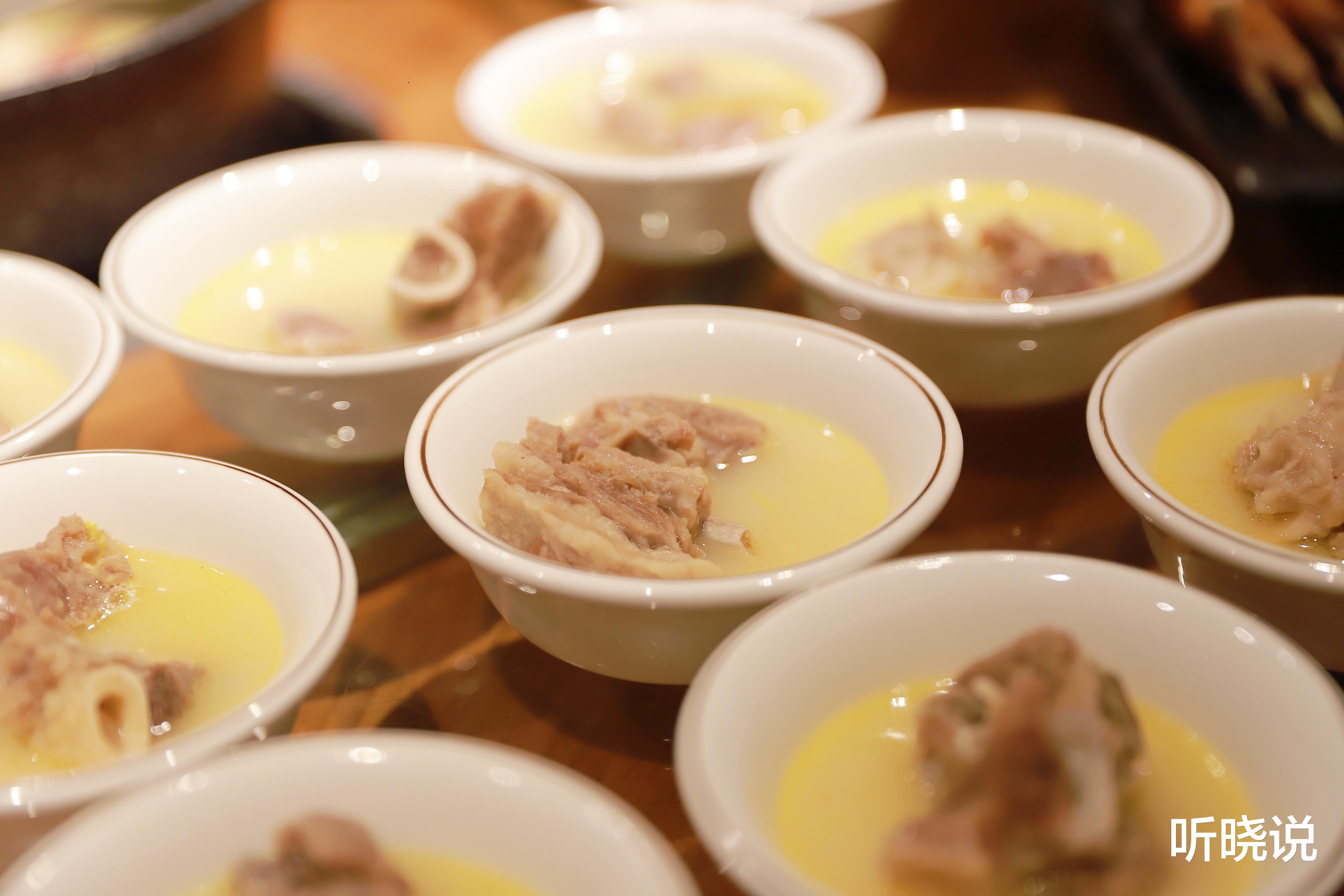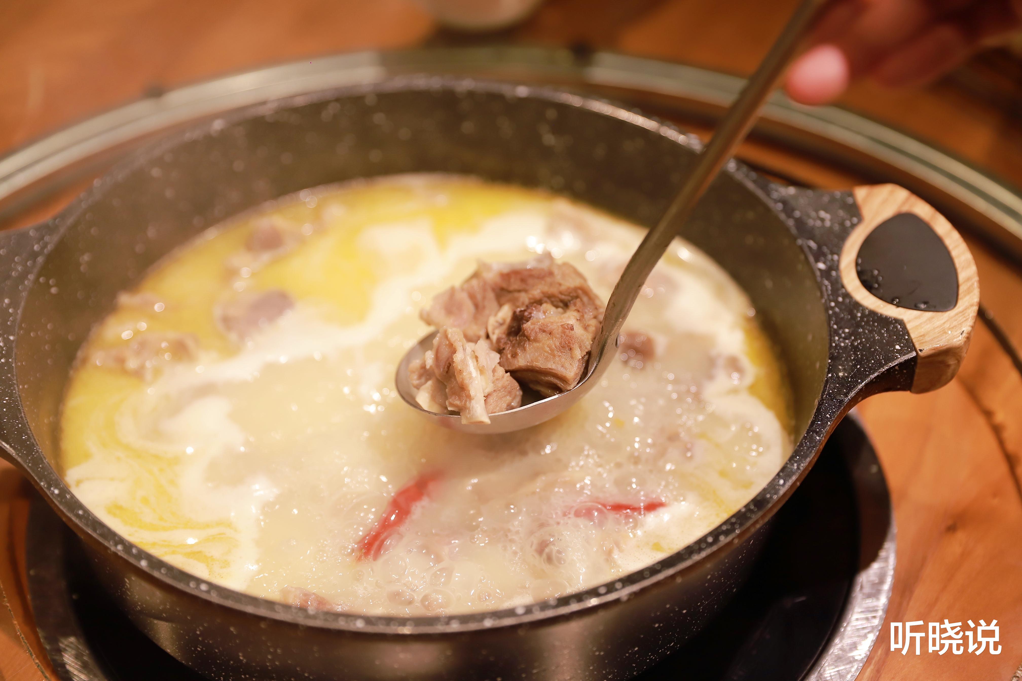 老板看到我们是第一次来,热情地推荐了铁锅炖小公羊,说是来店必吃,而且适合多人。这一锅满满的羊肉汤,经过了九道工序、耗时九十分钟完成,熬出来的浓汤果然不一般。喝汤、吃肉、涮菜、煮面,每一个环节都有不同的享受。