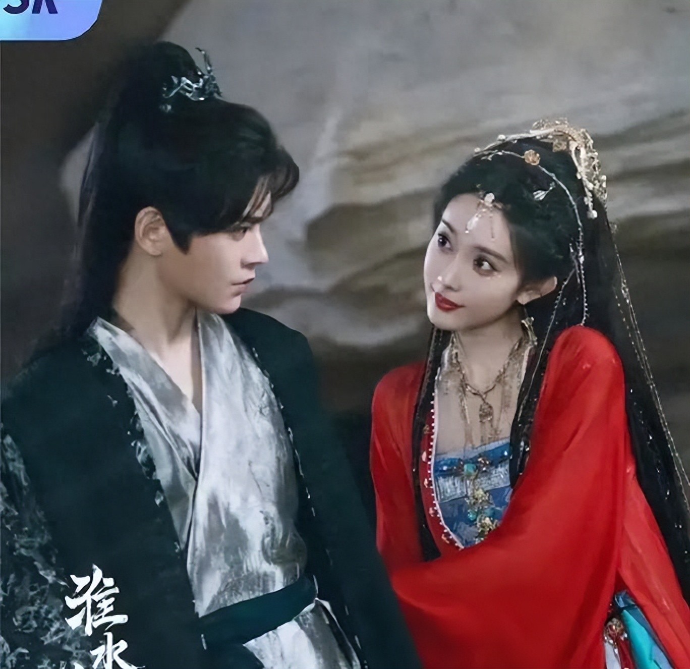 服化道堪称近年古偶剧的标杆,制作还是能看出用心的。宋祖儿的红衣嫁衣、坠马髻配珍珠步摇,剧中“雪中折腰”“马背救妻”等名场面,光影构图如壁画般精致。还有航拍镜头展现水利工程与战场群像,赋予剧集史诗感。