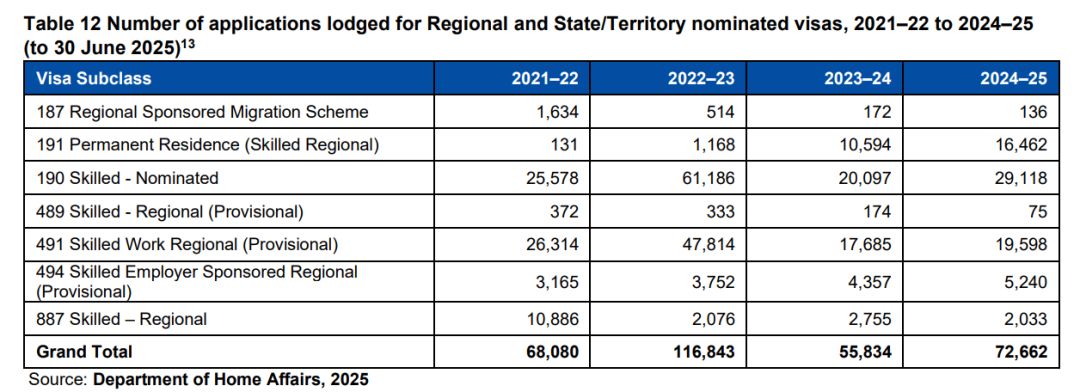再看下需要州和领地提名的各类签证,在24-25财年190和491签证的递交数量高于23-24财年。