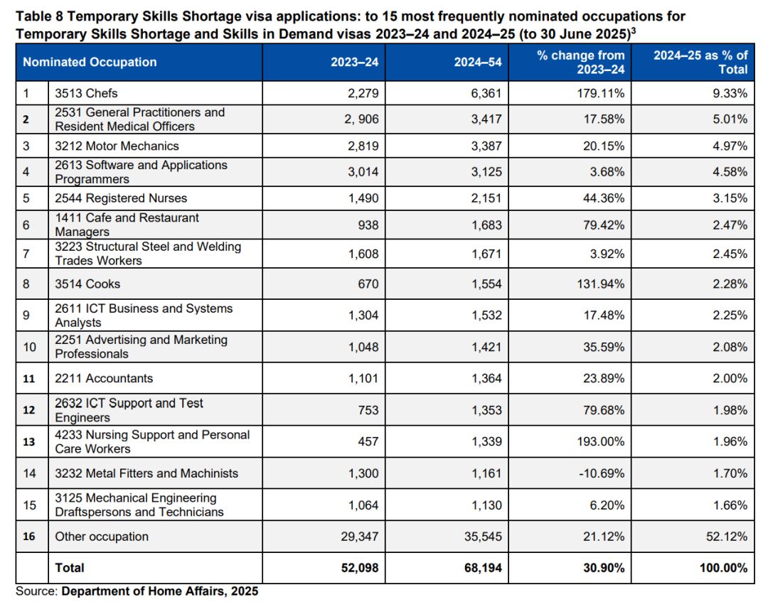 24-25财年,澳洲482签证递交人数达到86,235万人,远超23-24财年的64,099人。