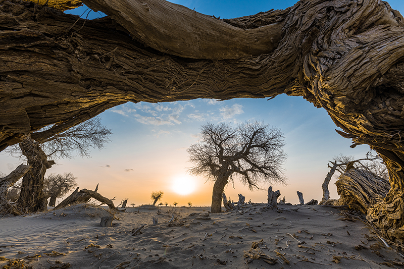 从一道桥到八道桥,45万亩胡杨林编织出秋日最炽烈的色彩。虬枝盘曲的金色树冠倒映在弱水河畔,骆驼队穿行其间,每一步都踏进梵高的油画。黄昏时分,怪树林的剪影在落日中苍凉起舞,诉说“生而不死一千年”的生命史诗。