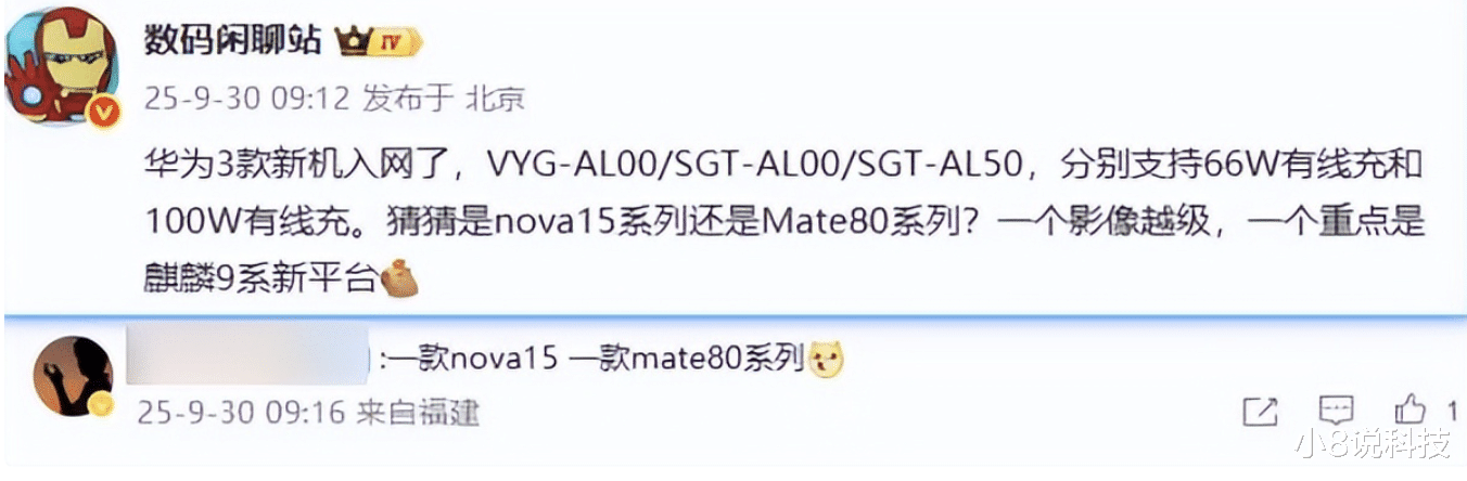 小8也仔细琢磨了一下,100W的大概率就是Mate 80系列,66W那台可能就是nova 15。