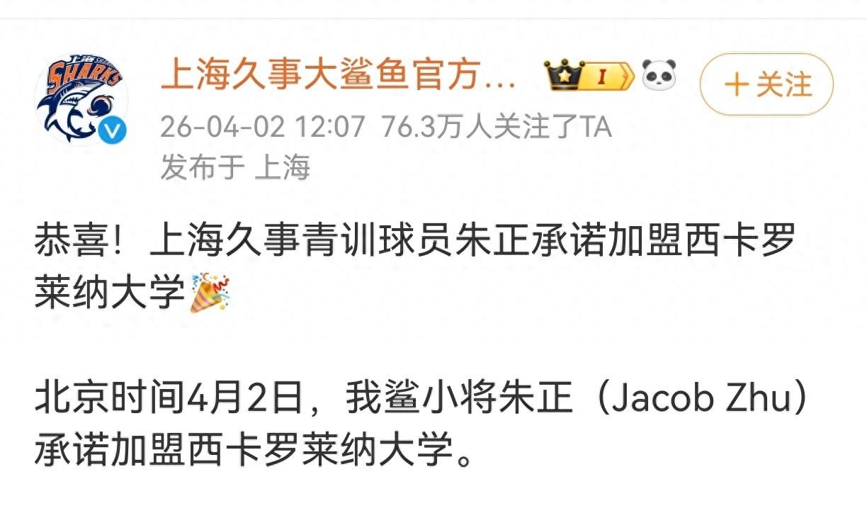 近日看到上海久事大鲨鱼俱乐部发文祝贺本俱乐部小将朱正加盟西卡罗莱纳大学,第一反应是朱正什么时候是上海队的球员了,翻看了一下资料才发现,朱正出生于美国,他的父亲是福建人,母亲是非洲人,去年归化成中国球员上海队从中起到了很大作用,所以朱正的身份证地址也在上海,加盟上海青年队也是顺理成章。