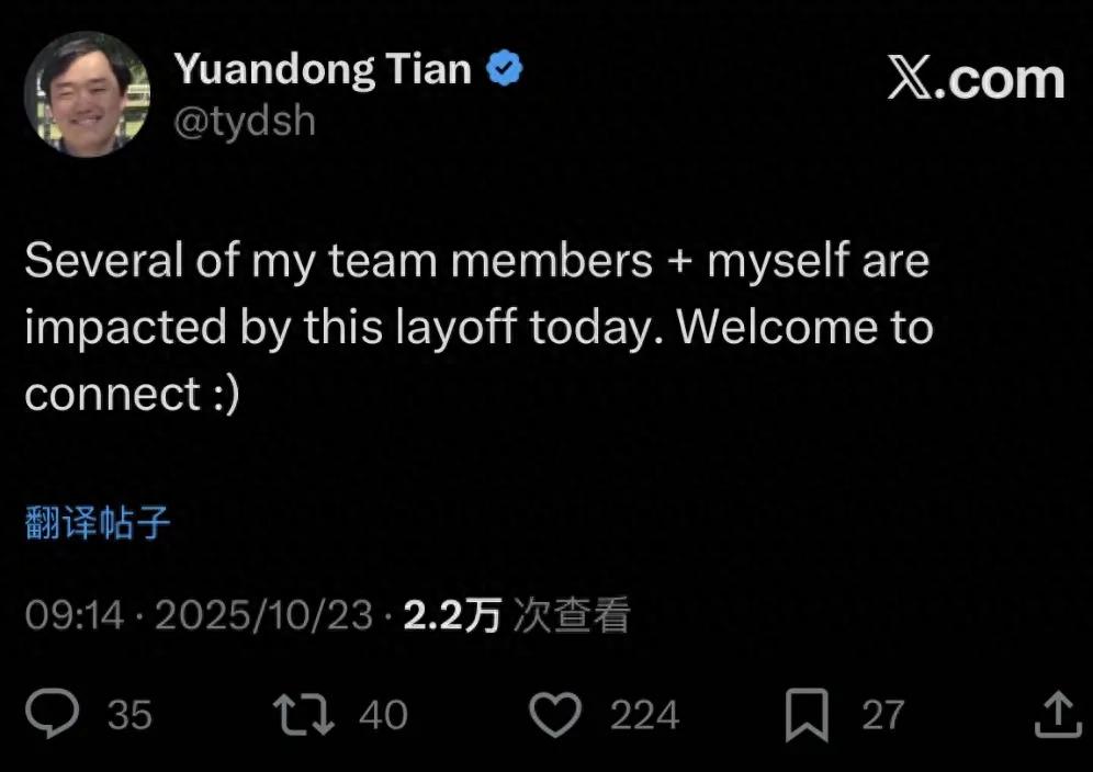 很疯狂,Meta AI裁员能裁到田渊栋头上,而且是整组整组的裁。