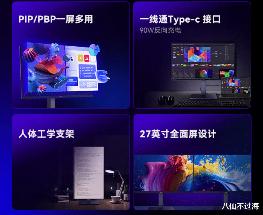 在连接与扩展方面,HKC T2755U的Type-C接口提供了“一线通”解决方案。仅用一根线缆即可实现视频信号传输、音频输出和为笔记本提供高达90W的快速充电,桌面瞬间简洁,连接MacBook等设备尤其便捷高效。此外,T2755U内置了PIP/PBP分屏、KVM切换器等功能,进一步提高用户多窗口或多设备下的工作效率。