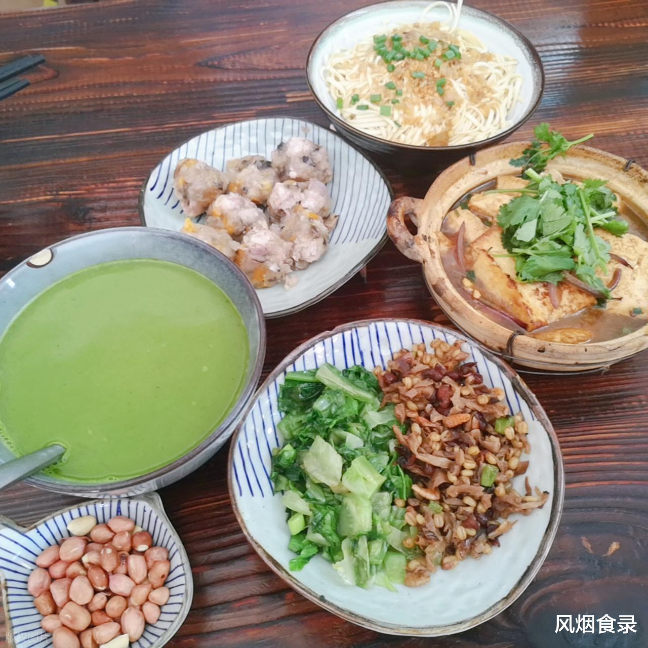 妙在配菜:酸豆角脆得掉渣,萝卜干咸中带甜,花生米炸得酥香,最后撒把葱花,绿得晃眼。