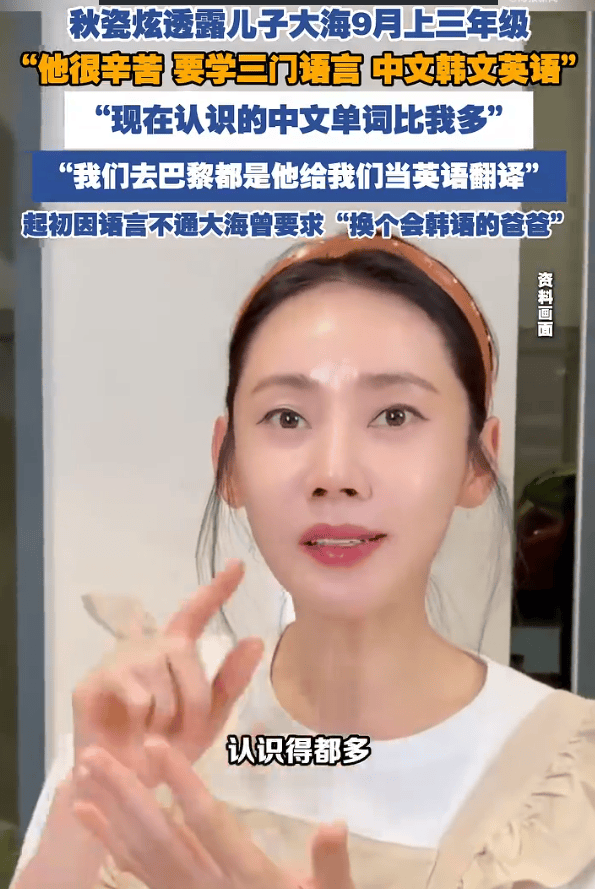 近日秋瓷炫分享家庭日常,一番话戳中无数跨国家庭爸妈!她坦言儿子大海今年9月就要上三年级,小小年纪要同时啃下中文、韩文、英语三门语言,看着孩子辛苦自己满是心疼,儿子的超强语言天赋,又让网友忍不住惊叹。