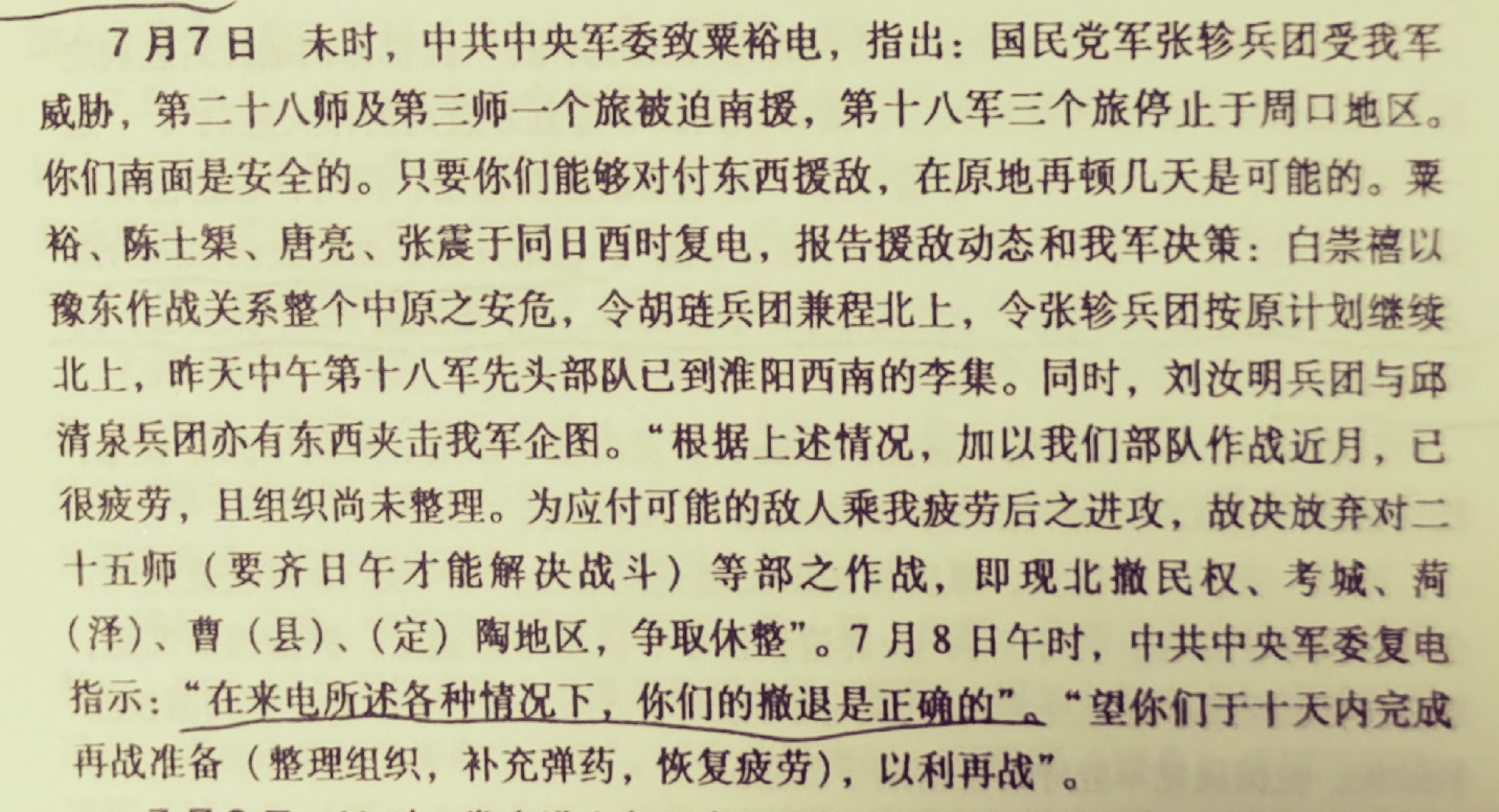 粟裕指挥部队撤出战场并向中央军委汇报情况