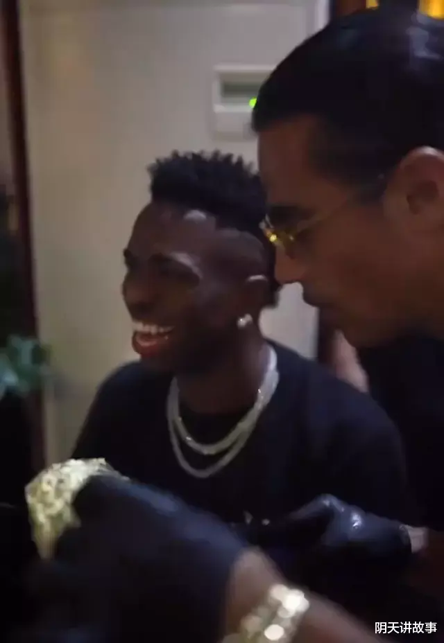 维尼修斯看着撒盐哥为自己服务,乐开了花。